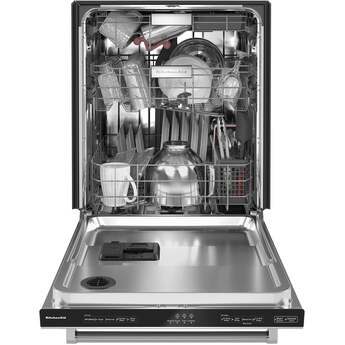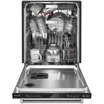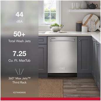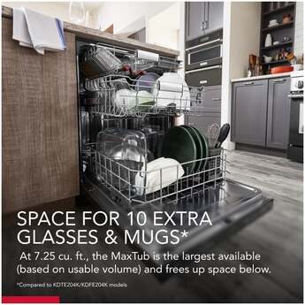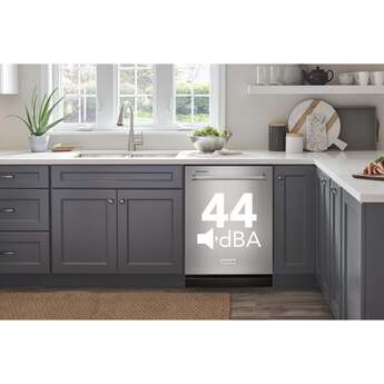 provides quiet cleaning without compromising performance, so there's no need to wait to run a wash cycle while entertaining and enjoying meals, even in open concept kitchen