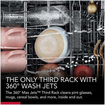 Keep up with the tools you use from prep to table with this dishwasher's three racks of versatile loading possibilities and complete wash coverage. The FreeFlex Third Rack fits glasses, mugs, bowls, silverware and cooking tools, freeing up room below for pots, plates and mixing bowls. The Advanced Clean Water Wash System circulates clean water to dishes in all three racks.