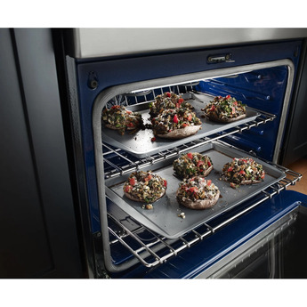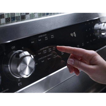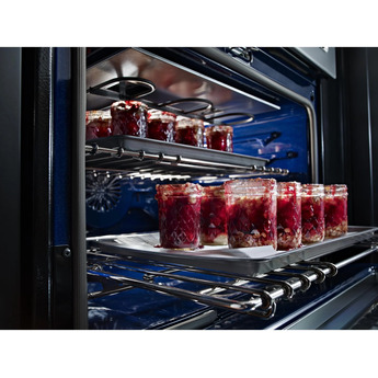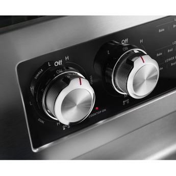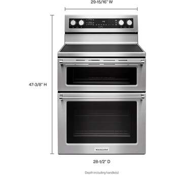 Combines a bold blend of professionally-inspired styling with sleek touches for the home. This double oven range features Satin Textured Handles and the KitchenAid Badge, a symbol of uncompromised quality.