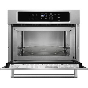 The EasyConvect Conversion system on the KitchenAid-KMBS104ESS 1.4 Cu. Ft. Stainless Steel Built-In Microwave allows users to cook their favorite recipes without trying to figure out the appropriate settings for convection cooking. Powerful 1000 Watt cooking power and a stainless steel oven cavity work together to produce exceptional results. Bake, roast, and broil your choice of meat and entrees with confidence. Use the quick touch microwave settings to pop popcorn, defrost frozen meals and keep food warm until ready to serve. The built-in KMBS104ESS comes with 27" and 30" trim kits to seamlessly fit into your kitchen design.