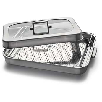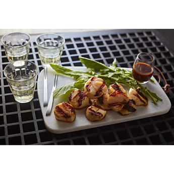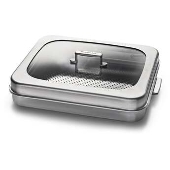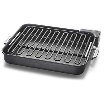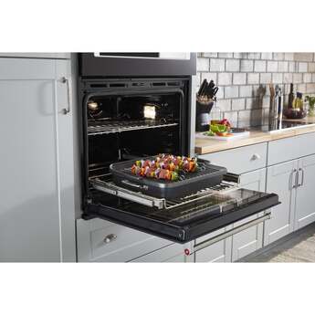 Allows true grilling year-round. It minimizes smoke and eliminates the flares common on outdoor grills, and its advanced design heats evenly from edge to edge. Connects to a powered hub in the oven, enabling you to control cooking manually or select modes that helpfully suggest when to turn chops or remove scallops. Easy-clean, dishwasher safe. Included in the purchase price, the base pan, heating element and grill are delivered along with your new oven.