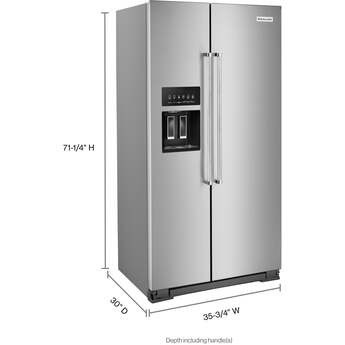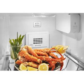 This 22.6 cu ft. side-by-side refrigerator features the Preserva Food Care System. Its two independent cooling systems help keep food fresh while the FreshFlow Air Filter minimizes odors, and the Produce Preserver delays over-ripening. The counter-depth design gives the high-end look of built-in refrigerators and the PrintShield Finish resists fingerprints and smudges on the stainless exterior.