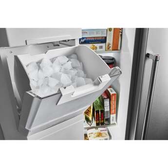 adds interior room in the refrigerator with an ice bin that mounts on the inside left door to allow for extra space on the shelves