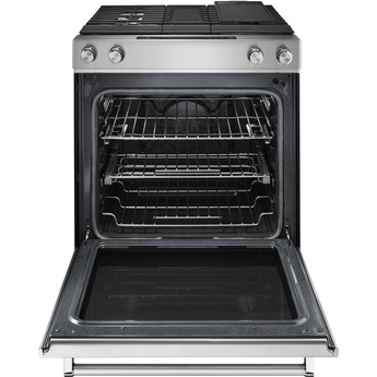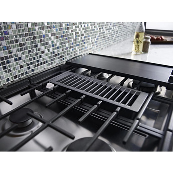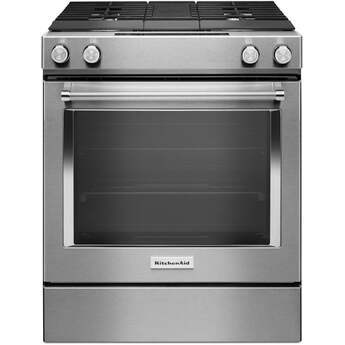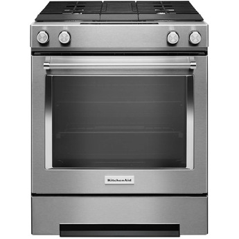 Upgrade your kitchen with the KitchenAid-KSDG950ESS 30" Stainless Steel Freestanding Dual Fuel Range with Downdraft Ventilation - Convection, conveniently coming with a built-in downdraft ventilation system to keep the air fresh and clear while cooking. Getting dinner on the table is a breeze with simple touch screen features and a convection oven that bakes, roast, and broils to perfection. Not to mention the spacious 6.4 cu. ft. that allows you to cook multiple dishes simultaneously. Finally, clean-up is easy with an odorless, low heat method completed in under an hour.