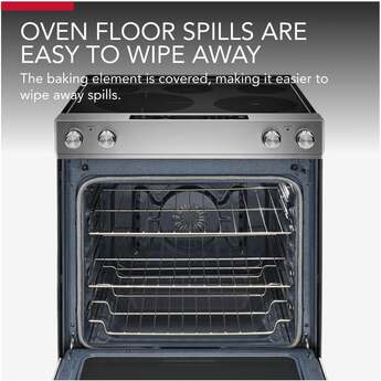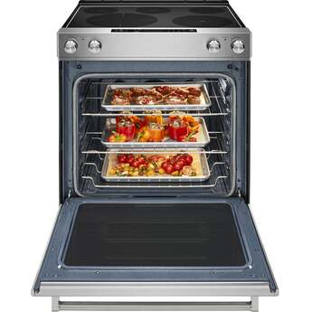 This electric slide-in range provides a large cooking capacity that easily handles multiple dishes at once.
