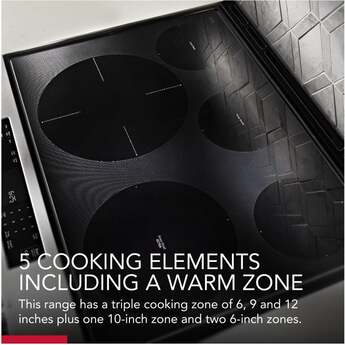 Provides five independent cooking surfaces that allow you to do more on your range. It features a triple cooking zone of 6, 9 and 12 inches, one 10 inch zone and two 6 inch cooking zones, plus a dedicated warming zone.