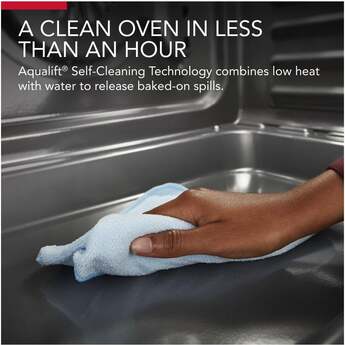 Cleans your oven in less than an hour without odors and at a temperature below 200F. This innovative system combines low heat with water to release baked-on spills.
