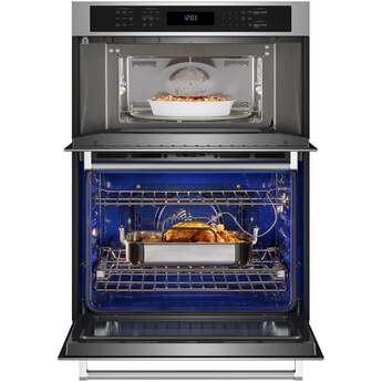 Combination Microwave Wall Oven includes - Dishwasher-Safe Air Fry Basket - Microwave Crisper Pan - Integrated Meat Thermometer