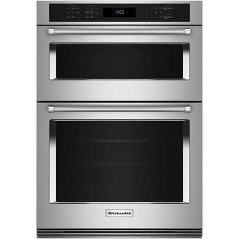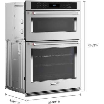 Feature specialized hinges that make it easy to shut the oven when your hands are full. Just give either door a nudge, and it will gently close itself.