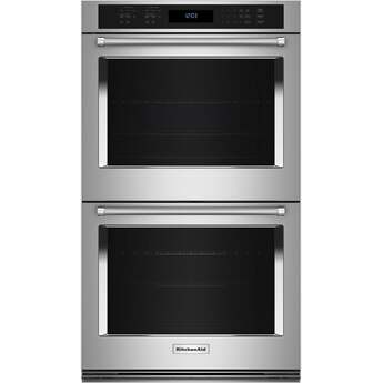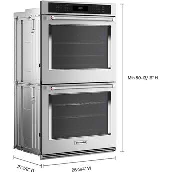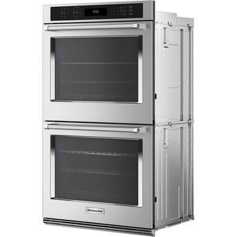 Feature specialized hinges that make it easy to shut the oven when your hands are full. Just give either door a nudge, and it will gently close itself.