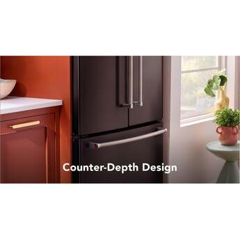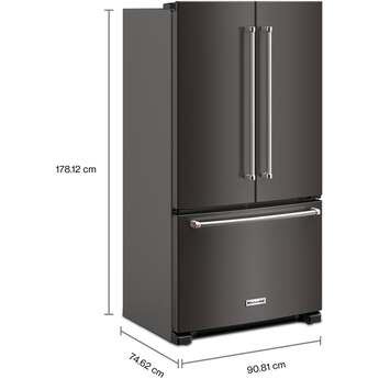 KitchenAid 36 Inch Freestanding Counter-Depth French Door Refrigerator with 20 Cu. Ft. Total Capacity, Interior Water Dispenser, Ice Maker, Spill-Resistant Framed Shelves, Wood-Look Nesting Shelf, Ultra-Bright LED Lighting, ExtendFresh? Temperature Management System and ENERGY STAR Certified: Black Stainless Steel with PrintShield Finish