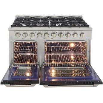 - Natural Gas, 8 Sealed Burners, Double Ovens, 6.7 cu. ft. Total Oven Capacity, Convection Oven, Continuous Grates, Viewing Window, Convection Cooking, Sealed Burners, Large Viewing Window in Black