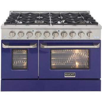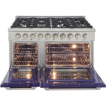 - Liquid Propane Gas, 8 Sealed Burners, Double Ovens, 6.7 cu. ft. Total Oven Capacity, Convection Oven, Continuous Grates, Viewing Window, Convection Cooking, Sealed Burners, Large Viewing Window in Blue