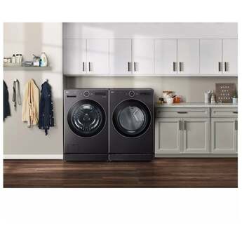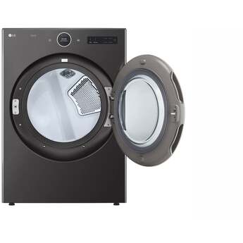 • 7.4 cu. ft. Capacity, Wi-Fi Enabled, 23 Dry Cycles, 6 Temperature Settings, Steam Cycle, Energy Star Certified, ThinQ Technology, FlowSense, NeveRust Stainless Steel Drum, Sensor Dry, TurboSteam Technology, Wrinkle Care Option in Black Steel