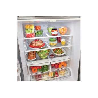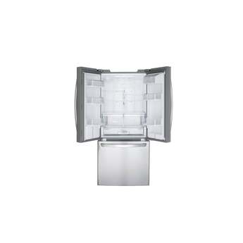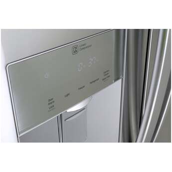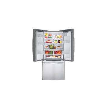 This LG-LFDS22520S 30" 21.8 cu. ft. Stainless Steel with PrintProof Finish French Door Refrigerator - Energy Star model features a linear compressor that speedily responds to internal temperature fluctuations, keeping food at the ideal temperature for freshness and good taste. Also, every section of the refrigerator has vents that dispense cool air to keep it well dispersed around the inside. It also has a diagnostic feature that informs people how to troubleshoot problems by calling customer service or using an app on their phones.