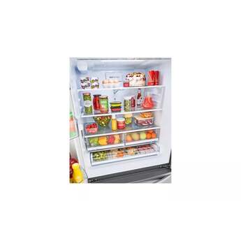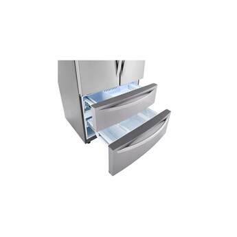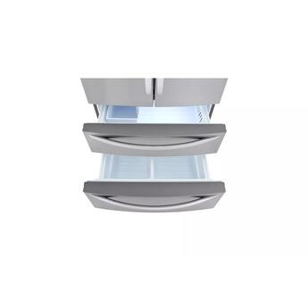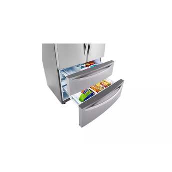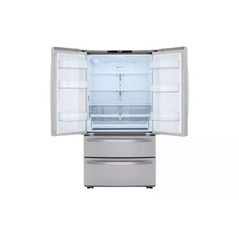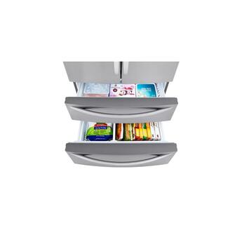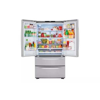 Stock-up and store everything you need. With a cavernous 27 cubic feet of space, this LG French Door refrigerator gives you ample space for all of your family's favorite foods and keeps them conveniently organized and within reach.