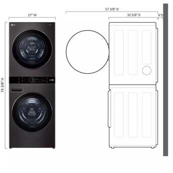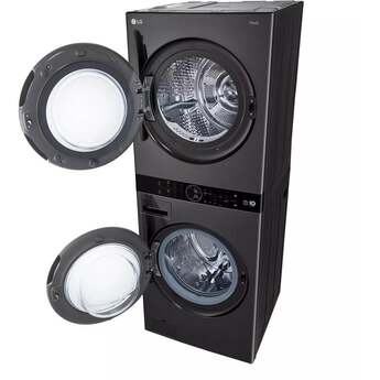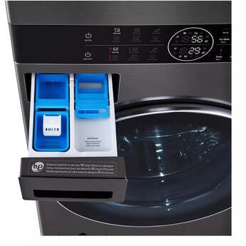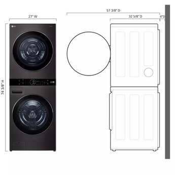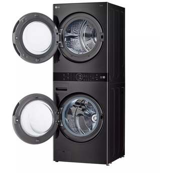 - 5 cu. ft. Washer Capacity, 7.8 cu. ft. Dryer Capacity, WashTower, DUAL Inverter Heat Pump Dryer, Center Control in Black Steel
