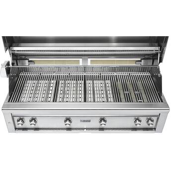 - Infrared Burners, Rotisserie, 1555 sq. inches Grilling Surface Size, Warming Rack, Side Table, Stainless Steel Grates, Halogen Lights, Trident Burner, Seamless Welded Construction, Rotisserie System, Ceramic Burner in Stainless Steel