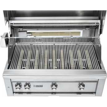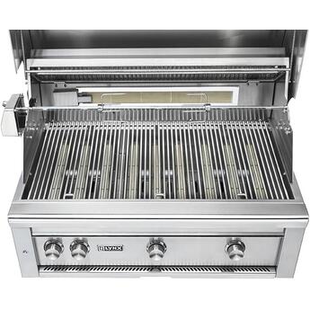 • Infrared Burners, Rotisserie, 935 sq. inches Grilling Surface Size, Warming Rack, Stainless Steel Grates, Halogen Lights, Trident Burner, Lynx Hood Assist, Rotisserie System, Seamless Welded Construction in Stainless Steel
