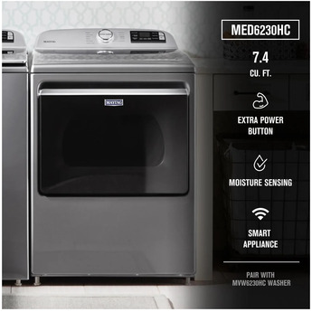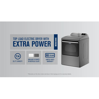 One push of the Extra Power button on Maytag heavy duty dryers boosts drying power on any cycle by extending time, heat and tumbling. This top load dryer helps evenly dry loads with Advanced Moisture Sensing. Plus, optional smart electric dryer features like remote start and cycle notifications help you stay in control and efficiently manage laundry from anywhere.