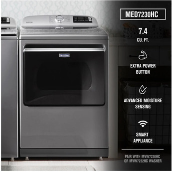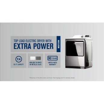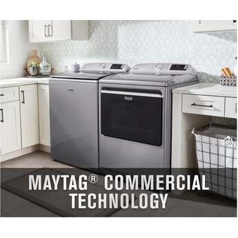 One push of the Extra Power button on Maytag heavy duty dryers boosts drying power on any cycle by extending time, heat and tumbling. Commercial-grade dryer technology ensures it's built to last, while optional smart electric dryer features like remote start and cycle notifications help you stay in control and efficiently manage laundry from anywhere.