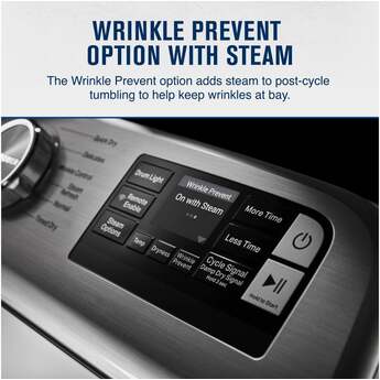 With the Wrinkle Prevent option with Steam, the dryer tumbles your clothes with steam for up to 150 minutes after the cycle has ended to keep wrinkles at bay