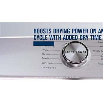 The Extra Power button boosts drying power on any cycle by extending time, heat and tumbling. One push helps prevent underdrying by getting thick fabrics, pockets and seams drier the first time