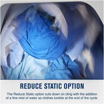 The Reduce Static option cuts down on cling with the addition of a fine mist of water as clothes tumble at the end of the cycle
