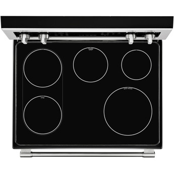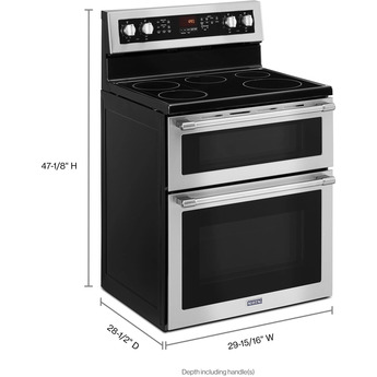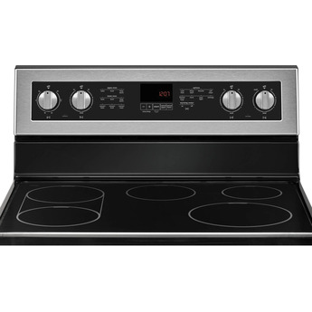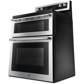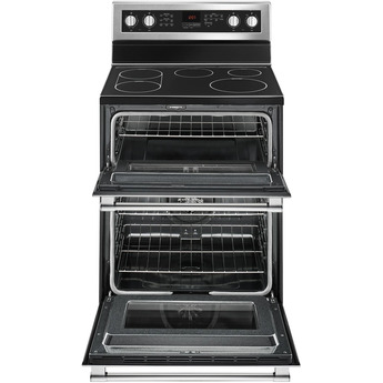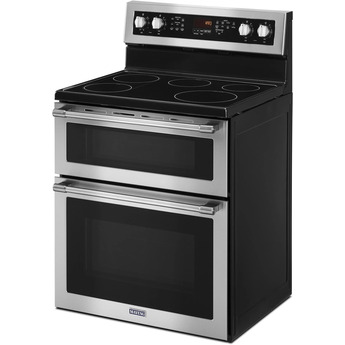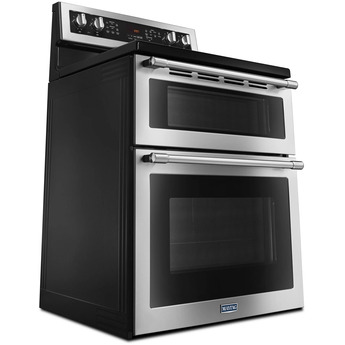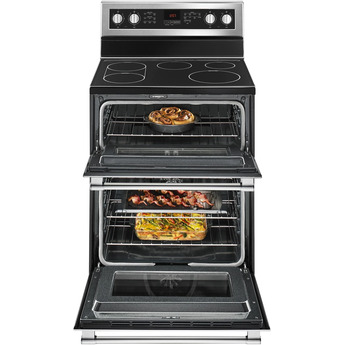 An accelerated preheat option on the Maytag-MET8800FZ 30" Fingerprint Resistant Stainless Steel Double Oven Electric Range - Convection model enables getting food on the table faster by minimizing delays. The oven also has internal sensors that monitor the heat of the food and adjust the warmth output accordingly to reduce the likelihood of overdone areas or cold spots. The cooktop offers up to 3,200 watts of cooking power but provides options as low as 100 watts for helpful flexibility, too.