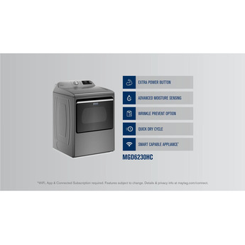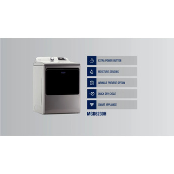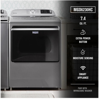One push of the Extra Power button on Maytag heavy duty dryers boosts drying power on any cycle by extending time, heat and tumbling. This top load dryer helps evenly dry loads with Advanced Moisture Sensing. Plus, optional smart gas dryer features like remote start and cycle notifications help you stay in control and efficiently manage laundry from anywhere.
