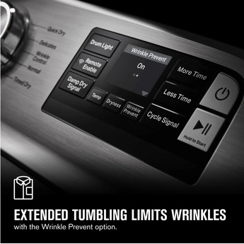 The Wrinkle Prevent option runs for up to 150 minutes after the cycle has ended to help keep wrinkles from forming as the dryer continues to tumble