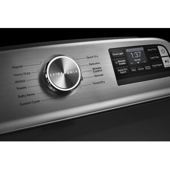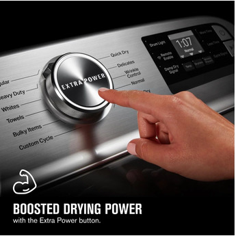 The Extra Power button boosts drying power on any cycle by extending time, heat and tumbling. One push helps prevent underdrying by getting thick fabrics, pockets and seams drier the first time