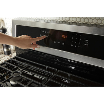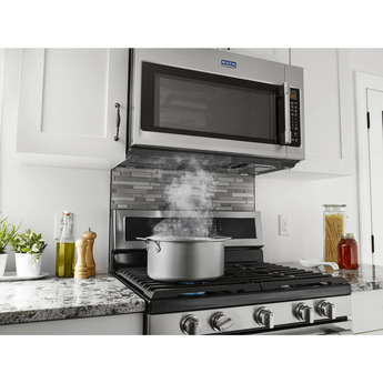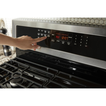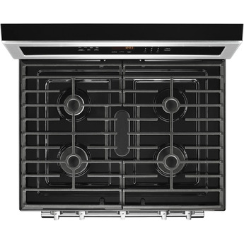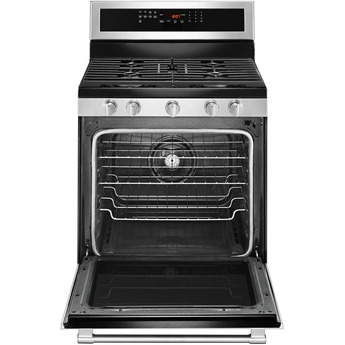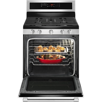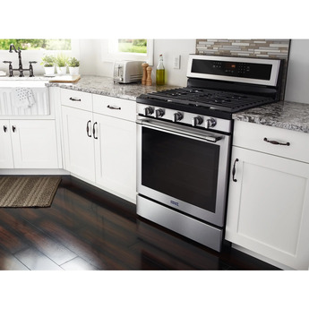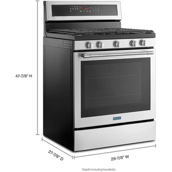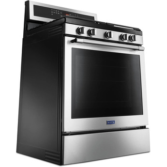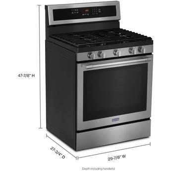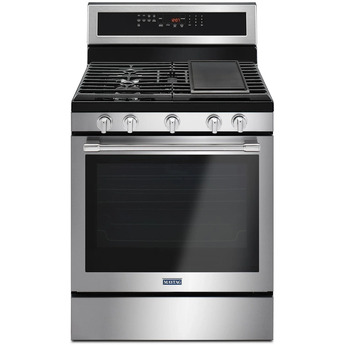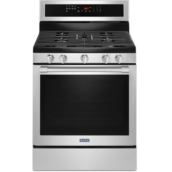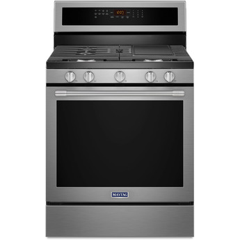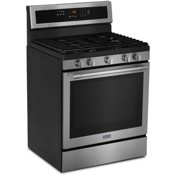 The Maytag MGR8800FZ 30" Fingerprint Resistant Stainless Steel Gas Range - Convection is highly efficient and has the sleek design to complement any new or remodeled kitchen. Never wait around for the oven to preheat thanks to the Power Preheat feature. The Power Burner delicately melts chocolate without scorching and perfectly sears a steak without burning. Dip the Max Capacity Rack down to create more space for that celebration feast. Bake it perfectly with True Convection. Unsure what time or temperature to set the oven while cooking with convection power? The Auto Convection Conversion automatically does that calculates, taking the guesswork out of recipe conversion. The Maytag MGR8800FZ also has an oval burner on the cooktop to accommodate the large, oddly shaped pots and griddles.