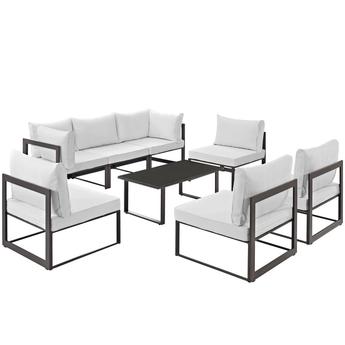 - Fortuna Collection EEI-1730-BRN-WHI-SET 8 PC Outdoor Patio Sectional Sofa Set