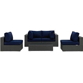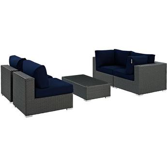 Sojourn Collection EEI-1882-CHC-NAV-SET 5 PC Outdoor Patio Sectional Set