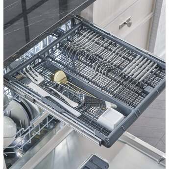 Convenient and adjustable, this expansive third rack easily accommodates an entire flatware collection, plus carving knives, soup ladles and other cooking/serving tools for the ultimate clean
