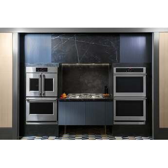 Sleek handle-less design now benefits from the convenience of voice control. Once programmed, you can use your voice to open the oven door, preheat the oven and more, all without raising a finger