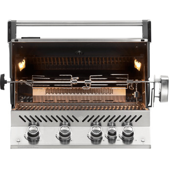 Buying a Built-In Grill Head means that you can have your steak and eat it too. The Napoleon Built-In Prestige PRO 500 Propane Gas Grill Head with Infrared Burner provides unparalleled performance and durability without skimping on style. Shining stainless steel construction makes this grill durable while chrome accents gleam with luxury. The LED Spectrum NIGHT LIGHT control knobs illuminate the control panel in a color to match your mood, with near endless possibilities. This grill isn't just good-looking; get the most versatile grilling experience, whether you are grilling low and slow or searing something scrumptious; you'll know it's a Napoleon with the iconic WAVE cooking grids and proximity lighting. Use the integrated infrared rear burner for succulent rotisseried meals. Perfect and professional, the PRO 500 Built-in Grill Head is the ideal addition to your outdoor gourmet kitchen.