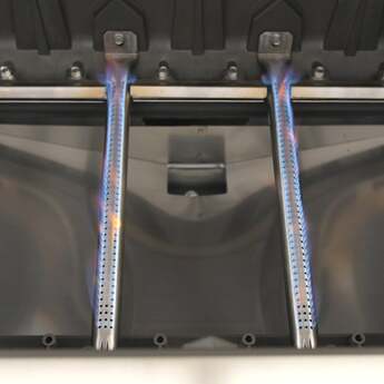 Infrared heat from the rotisserie burner is perfect for high ehat searing and slow spit roasting using the rotisserie