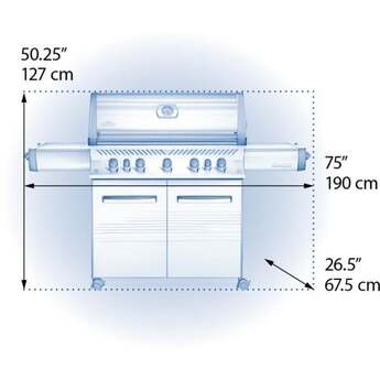 The Napoleon Prestige 665 Propane Gas Grill with Infrared Side and Rear Burners is the total grilling package; all in gleaming high quality stainless steel, this full sized cart model barbecue has the capabilities of a full outdoor kitchen. With five main burners, an infrared rear and side burner, this grill can cook meals using eight unique cooking styles. You'll know it's a Napoleon with the Iconic WAVE cooking grids for those distinctive sear marks. Not just durable on the outside; under the lid, is the same quality stainless steel used for the basin, tube burners, dual-level sear plates, and cooking grids. The stainless steel sear plates provide extra surface area for any drippings from your food to vaporize, avoiding flare-ups. Never leave your barbecue on again as all the Prestige series grills come with the SafetyGlow Feature where the control knobs glow red when the burner is on.