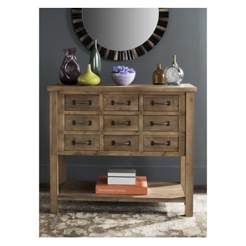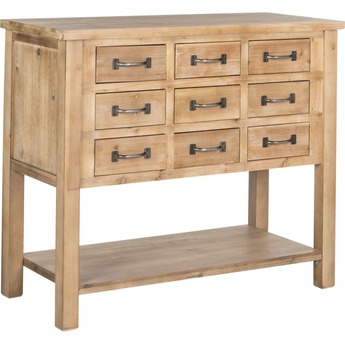 A handsome addition to industrial chic and rustic lodge style rooms, this fire wood chest in natural oak finish is inspired by apothecary cabinets used for centuries around the world. Stow your tiny treasures in nine drawers and on its handy lower shelf.