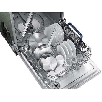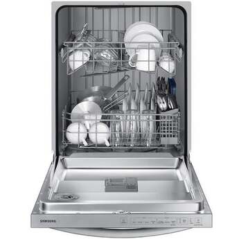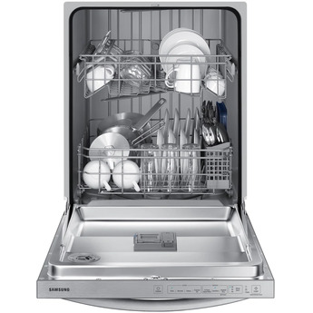 This Energy Star Certified Dishwasher by Samsung creates much less noise as its Hybrid Tub, with a stainless steel inner door, absorbs much of the sound and vibration. At 55 decibels the noise it creates is less than a normal conversation, so it won't disturb you.