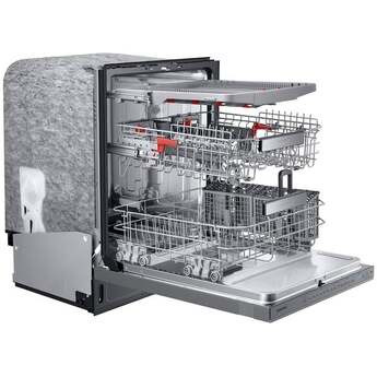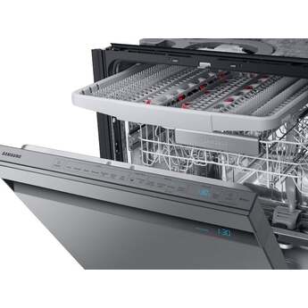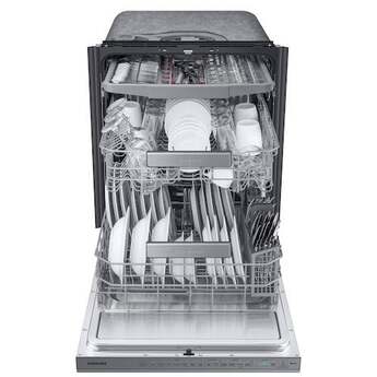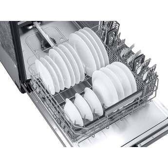 This Energy Star Certified Dishwasher by Samsung offers up to 15 place settings. The dishwasher features AquaBlast jets, AutoRelease Door and a flexible 3rd rack.