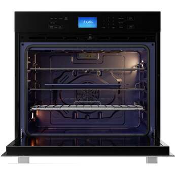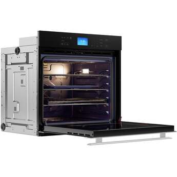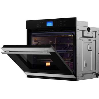 This 5.0 cu ft. 240V. SWA3052DS built-in wall oven uses True European Convection to cook evenly and heat efficiently. The 8 pass upper-element provides edge to edge performance. The 6-pass hidden bake element and sculpted floor of the modern, cobalt blue porcelain interior makes cleanup a breeze. Touch glass controls and a large LCD display makes the control panel easy to see and operate. Six sculpted rack positions create a versatile cooking space. The bright, halogen interior lighting and large viewing pane let you keep an eye on your food from the outside, while the built-in precision probe thermometer lets you know what is happening inside.