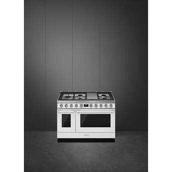 Smeg Portofino 48" Pro-Style White Natural Gas Sealed Burner Double Oven Range - Convection