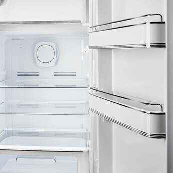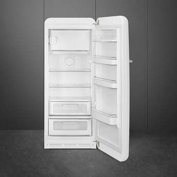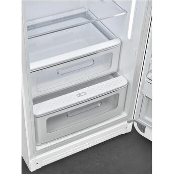 This 24" 50's Retro Style Aesthetic Refrigerator by Smeg offers total 9.92 cu. ft. capacity; 9 cu. ft. of fresh food and 0.92 cu. ft. of freezer capacity. It also features a Life Plus Zone (28 - 37 degree Fahrenheit), LED lighting, Automatic defrost, Fruit and vegetable drawer on telescopic guides and 3 adjustable glass shelves.