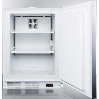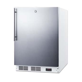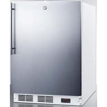 Accucold by Summit Appliance carries a range of general purpose and medical all-freezers designed for reliable, frost-free storage under the counter. At 24" wide and 32" high, the ACF48WSSHVADA is ideally sized for various institutional settings with ADA compliant counters. The front-breathing design allows built-in installation, while the fully finished cabinet also allows freestanding use. The user-reversible door includes a factory installed keyed lock for added security. This model comes with a white cabinet and stainless steel wrapped door with a thin pro style handle. It includes a hospital grade cord with a 'green dot' plug for added security in high traffic areas.Full frost-free operation ensures low maintenance operation, with an internal fan to keep the interior evenly cooled from top to bottom. A digital thermostat is located in the front kickplate, letting users manage the temperature without having to open the door. The interior includes two removable steel shelves. Made in the USA, the ACF48WSSHVADA offers quality freezer storage in a conveniently sized and featured unit. Additional door finishes are available. This model can also be paired with the matching FF7LBISSHVADA all-refrigerator.