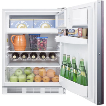 Sized with a 24" footprint, the CT661WBISSHHADA refrigerator-freezer offers a generous 5.1 cu.ft. storage capacity, larger than many units in this size class. The 32" height and front-breathing design makes it ideal for installation under lower counters complying with ADA guidelines for height restriction. The fully finished cabinet also enables freestanding use. This unit comes with a white cabinet and stainless steel wrapped door. A thin stainless steel handle is mounted horizontally for a sleek, modern look.