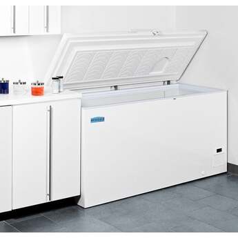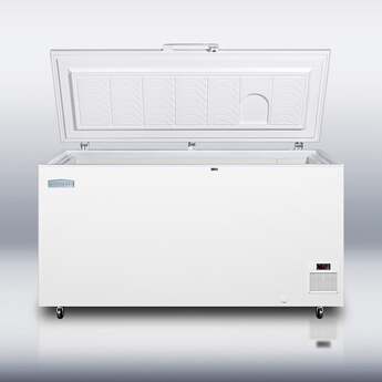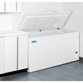 The Summit EL51LT Accucold 15.5 Cu. Ft. White Chest Freezer is commercially approved and has the ability to be built in to a range of spaces. Extra thick insulation and -45 degree temperatures are ideal for frozen goods and pharmaceuticals. The four solid wheels and access port make it easy to transport, and when coupled with the factory installed lock, keeps contents safe. All of these features reduce user maintenance time and effort. The white interior and exterior make beautiful additions to every home or business.