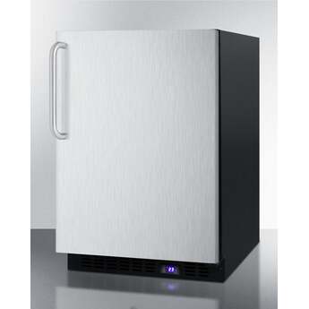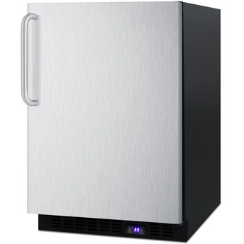 Save on meals by buying extra food at low prices and storing it inside the Summit-SCFF53BXSSTBIM 4.72 Cu. Ft. Stainless Steel Undercounter Compact Freezer. Featuring a stainless steel-wrapped body, it includes a metal, towel bar-style handle to make it easier to access the contents. Designed for residential use, the freezer has alarms that go off if the internal temperature is too high or the door has been open for too long. The appliance includes a factory-installed ice maker, too.